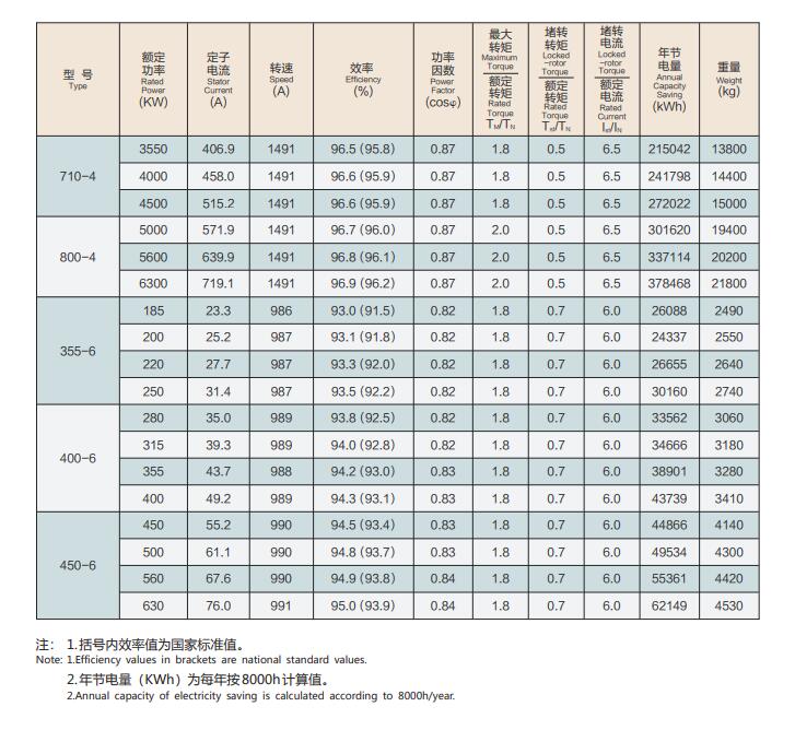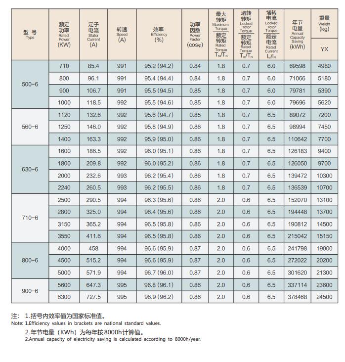 YXKK(IP44)、(IP54)系列6kV電機(jī)技術(shù)參數(shù):