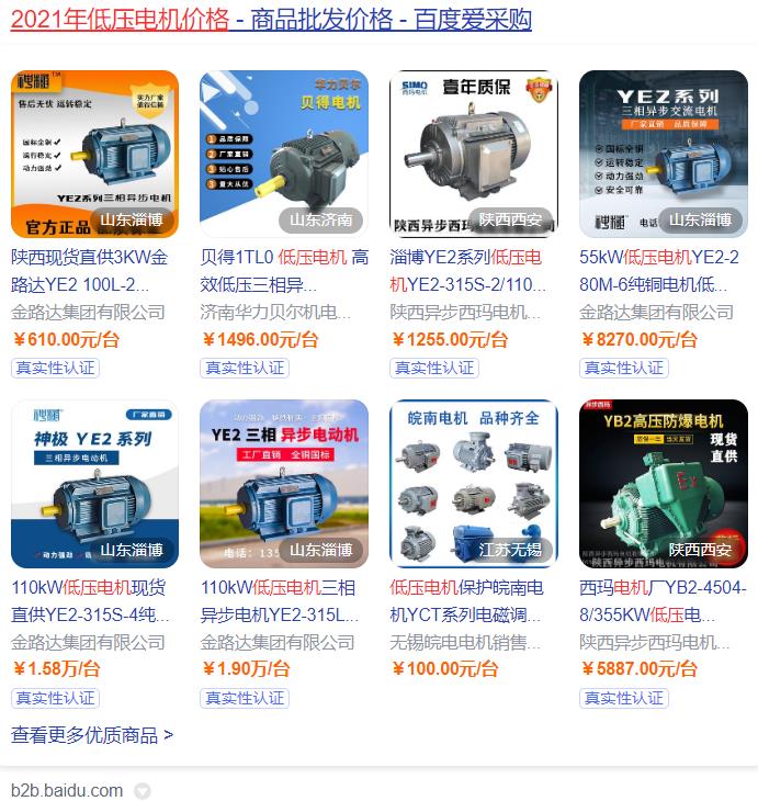 (百度愛采購(gòu)搜索得出2021年低壓電機(jī)價(jià)格)