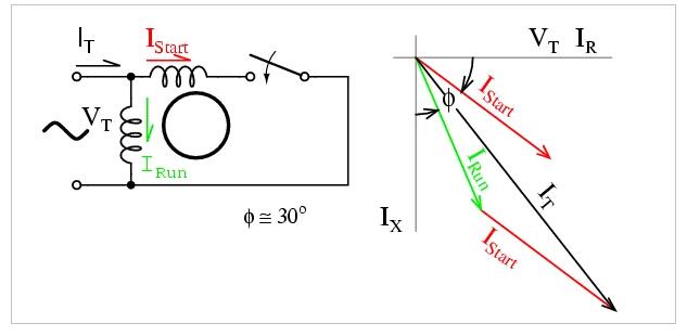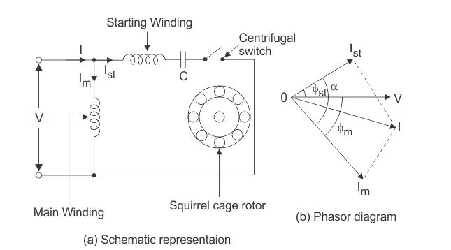 與起動繞組,我們連接的電容器,所以在電容器,即,流動的電流,IST由一些角度導(dǎo)致所施加的電壓,φST。