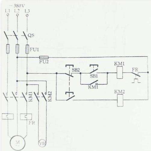當電機斷電停止運行后,電磁線圈yb就會有電,閘瓦緊抱閘輪使電動機迅速停車,從而實現(xiàn)制動。