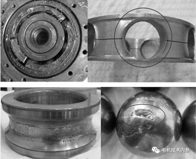 軸承腐蝕電機運行時,軸承腐蝕的故障比較少見。一般軸承端蓋的螺栓沒有擰緊到位,導(dǎo)致電機運行進水,潤滑劑失效。如果電機長時間不運轉(zhuǎn),由于水分的不斷侵蝕,軸承會生銹。