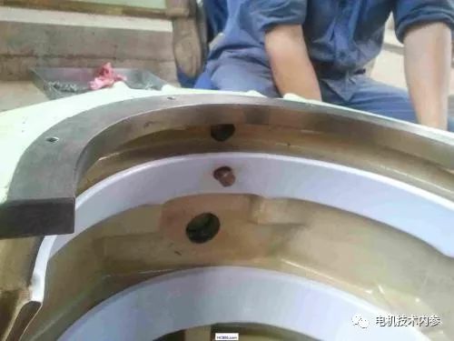 軸電流的影響。由于大型電機的定子磁場有時不平衡,在軸上產(chǎn)生感應(yīng)電動勢。不平衡磁場可能是由于鐵芯局部腐蝕、電阻增大、定轉(zhuǎn)子氣隙不均勻?qū)е螺S向電流和渦流發(fā)熱。