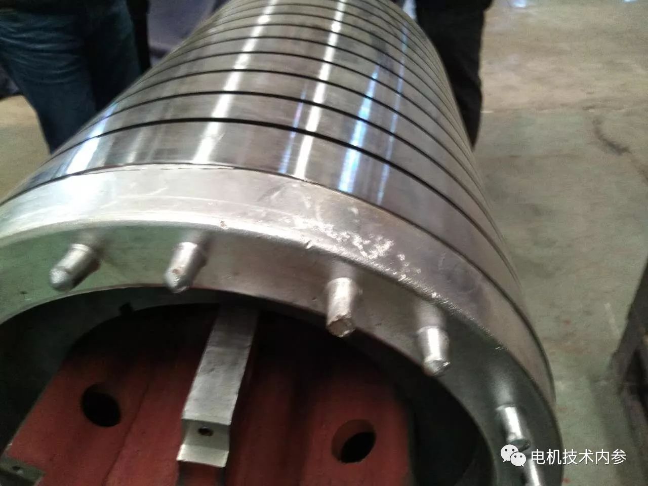 由于定、轉(zhuǎn)子鐵芯不對(duì)中,電機(jī)通電后定、轉(zhuǎn)子會(huì)自動(dòng)調(diào)整磁中心線,導(dǎo)致電機(jī)轉(zhuǎn)子軸向機(jī)械位置周期性擺動(dòng),電機(jī)軸承潤(rùn)滑脂流失,軸承干磨、燒損、分崩離析,導(dǎo)致電機(jī)軸鎖死、燒損。