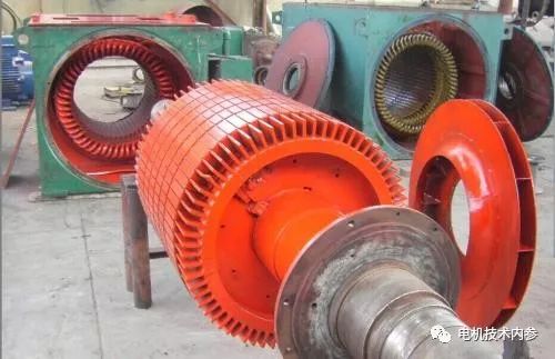 像小g和女士提到的高壓電機,定子和轉(zhuǎn)子都設(shè)有徑向通風(fēng)通道,轉(zhuǎn)子一般為輻鐵支架軸結(jié)構(gòu)。當(dāng)容量小或轉(zhuǎn)子片軸孔不夠大時,轉(zhuǎn)子片會沖出軸向通風(fēng)孔。因此,實際的通風(fēng)結(jié)構(gòu)可以分為徑向通風(fēng)結(jié)構(gòu)和軸向通風(fēng)結(jié)構(gòu),其中不存在簡單的軸向通風(fēng)。所謂軸向通風(fēng),只是指在風(fēng)路系統(tǒng)中,以沿軸向循環(huán)的風(fēng)為主流。雖然各徑向?qū)Я魉急壤^小,但其作用不可低估,故應(yīng)稱之為混合通風(fēng)。