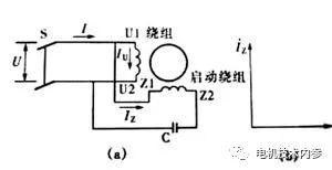 起動電機合閘時,主、副繞組同時通電,產(chǎn)生起動轉(zhuǎn)矩,電機轉(zhuǎn)起來。起動過程完了后,由繼電器開關斷開副回路(切掉起動繞組或副繞組),電機便僅由主繞組來工作。這類電機的副繞組多與主繞組在空間成90電角度正交安放,也有成任意角度θ非正交安放,起動繞組要串接一個合適的電容,使得與主繞組的電流在相位上近似相差90度。