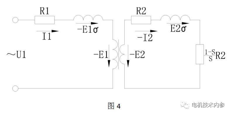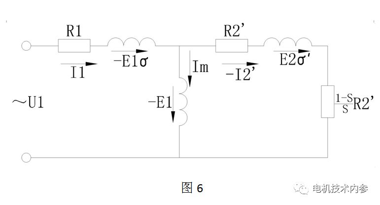 圖4是正相繞組的等效電路,圖5是基于圖4將轉(zhuǎn)子參數(shù)轉(zhuǎn)換到定子側(cè)的情況,圖6完全等效于圖5,已經(jīng)演變成異步電機的精確等效電路。